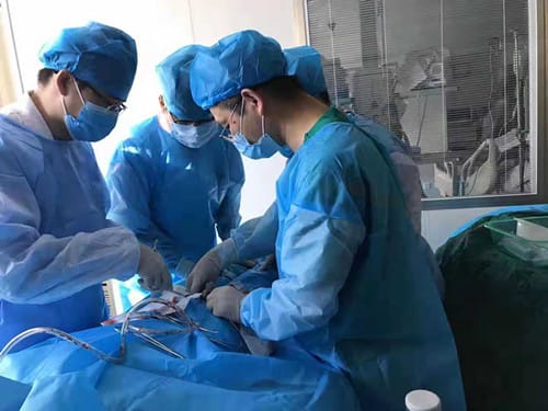 8:43。ECMO团队全员及设备全部就位。在院外心脏骤停后,持续心肺复苏已经40分钟,S同学的生命体征毫无好转迹象。“时间就是生命!ECMO是这个孩子延续生命的唯一希望。”重症医学科李主任当机立断,决定对病人实施ECPR。病人动脉穿刺困难,果断与蒋先训医师一同完成血管切开置管。