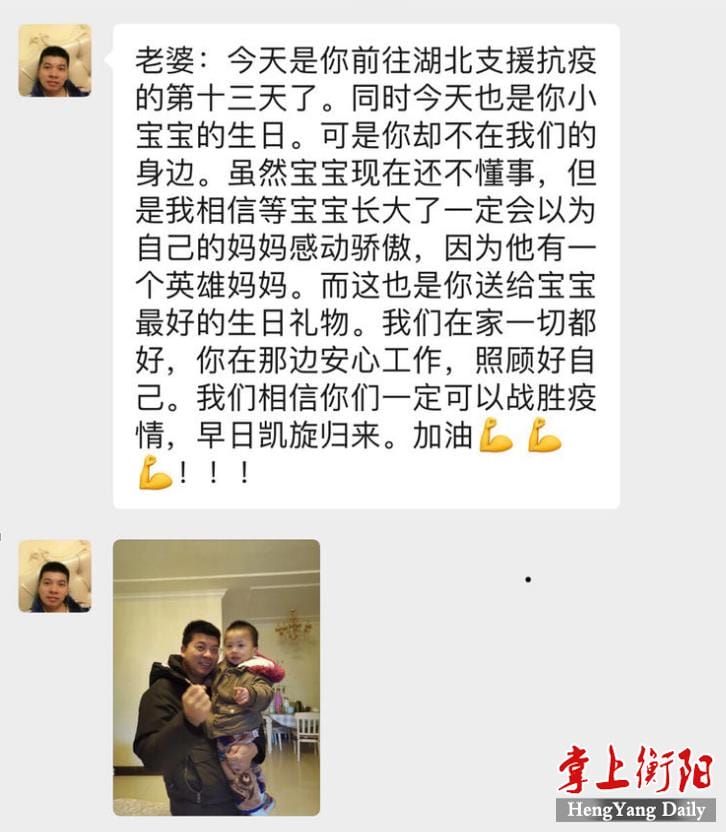 看着老公发给我的短信,突然有点想家了,远方的爱人和孩子还在期盼我凯旋的消息。而现在是控制疫情的关键时期,我们只有在前线努力救治患者,才能让后方的家人更加安心,我们的每一分付出既是为了“大家”的安定和谐,也是为了“小家”的平安喜乐。