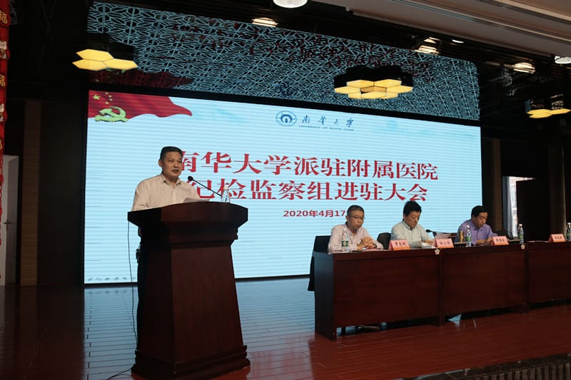 为深入推进南华大学附属医院全面从严治党和健康科学发展,4月17日下午,南华大学派驻附属医院纪检监察组进驻工作会议在南华大学附属第二医院教学综合楼7楼会议室召开。南华大学党委副书记阳小华出席会议并讲话。南华大学纪委书记熊哲琰主持会议。