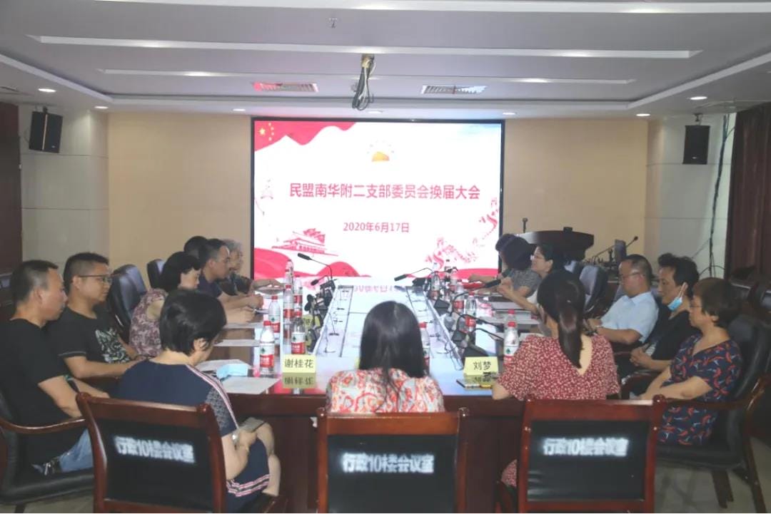 6月17日下午,民盟南华大学附二医院支部召开换届选举会议,选举产生了新一届支部委员会。民盟衡阳市委会专职副主委颜娟华、组织科科长陈勇帅应邀出席会议。