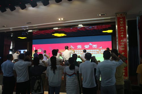 大会在庄严的国歌声中拉开帷幕。副院长颜亚平宣读表彰文件,对两个先进党支部、28名优秀共产党员进行了表彰。副院长赵立新带领新党员宣誓、老党员重温入党誓词。