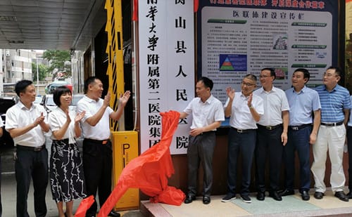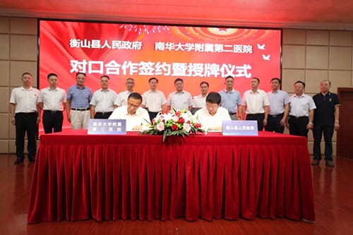 南华大学附二医院将根据衡山县人民医院的发展需要,派出专科知名专家和技术骨干为衡山县人民医院提供医疗技术扶持,确保衡山县人民医院专科同时稳步发展。支持衡山县建设胸痛中心、卒中中心、创伤中心,首批选派泌尿外科、普外科、神经外科、骨科、消化内科、超声影像科专科专家常驻衡山县人民医院进行综合帮扶,通过一系列的措施,以目前衡山县人民医院专科架构为基础,结合附二医院品牌特色,突出特色重点专科建设,形成区域优勢品牌学科影响力和辐射效应。