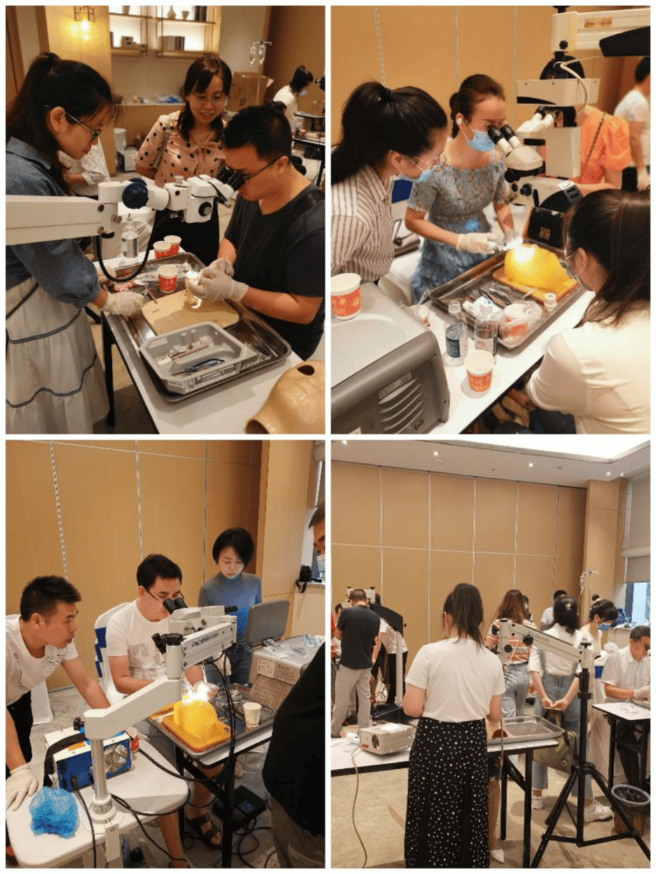 9月5日下午和9月6日上午,根据一院一名、县级医院及不能独立开展白内障手术的单位优先的原则从众多报名者选出的10余名眼科学员参加了白内障超声乳化手术实践操作,费志刚教授、喻小龙教授、夏世刚教授和吴凯教授对学员们的每一步操作都进行了耐心细致的技术指导。