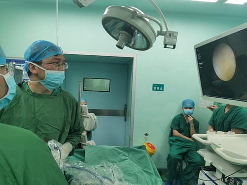 钱坤博士演示“电子输尿管软镜下钬激光碎石术”
