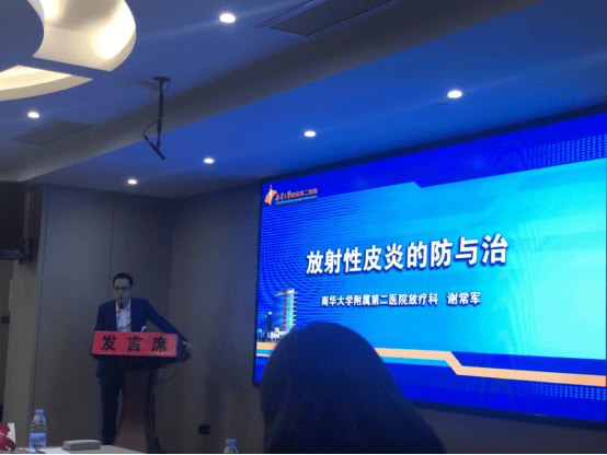 4月10日下午,由湖南省抗癌协会鼻咽癌专委会主办“头颈肿瘤精准治疗下基层”的专题会议在怀化市隆重召开,南华大学附属第二医院放疗科主治医师谢常军受大会邀请,讲授了《放射性皮炎的防与治》,受到与会专家、基层医护代表的一致好评。