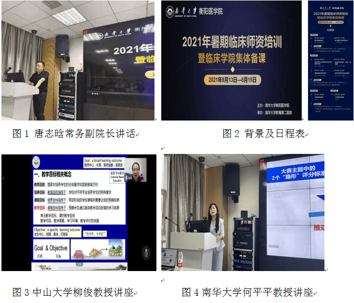 8月14日,南华大学衡阳医学院2021年暑期临床师资培训暨临床学院集体备课活动继续,活动由刘文捷主持。中山大学柳俊教授做了题为《如何设计让医学生可执行的教学目标》的专题讲座,分享教学目标设计的经验;南华大学何平平教授做了题为《推动教学创新,打造一流课程》专题报告,分享了参加首届全国教学创新大赛的心得体会和经验分享,并鼓励大家积极申报打造一流课程;邓宏军副教授做了题为《课堂教学基本技能》专题报告,陈哲副主任医师做了《如何开展床旁见习教学》专题培训。参会教师一致认为,师资培训内容设置合理,讲者授课内容详实、生动有趣,非常有利于促进临床教师教学水平提高。