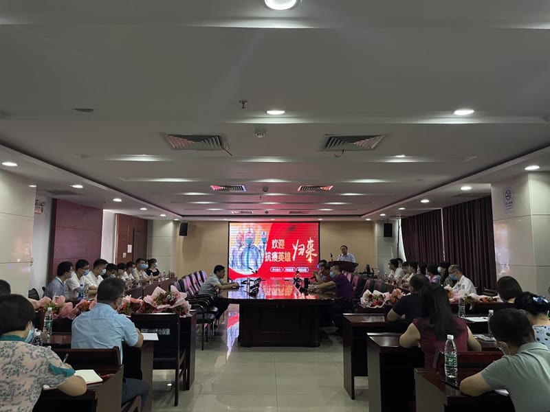9月13日下午三点,我院在新院行政楼十楼大会议室召开“欢迎抗疫英雄回家”座谈会,在院的领导班子成员,我院支援株洲、张家界医疗队全体队员,部分科室主任、护士长及职能部门负责人参会,副院长李国庆主持会议。