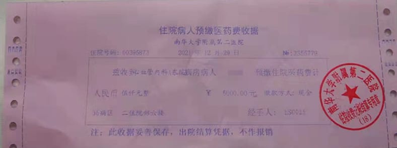 今天,附二医院心血管内科的患者龙先生收到了一张5000元的匿名住院缴费单,知道事情原委后,龙先生及家人感动得热泪盈眶。原来是龙先生家人悄悄塞给心血管内科雷长城主任的感谢红包,被雷主任当作病人的住院费交了。