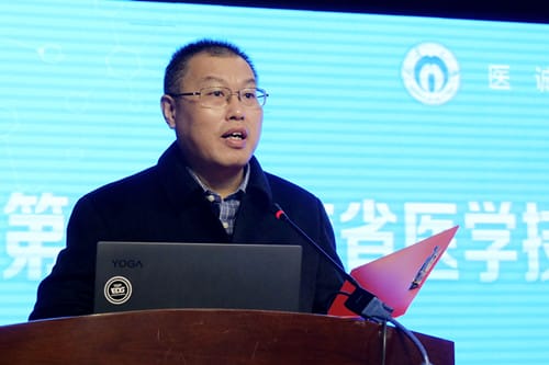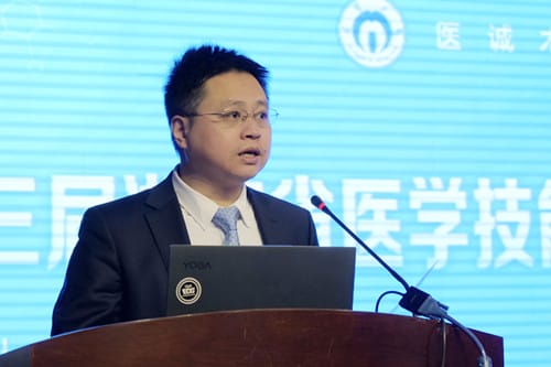 湖南省医学技能创新创业专业委员会主任委员、湘潭医卫职业技术学院党委书记刘建强讲话