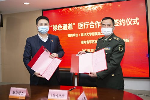 2022年2月8日下午,南华大学附属第二医院与湖南省军区衡阳第一离职干部休养所签订“绿色通道”医疗合作协议。