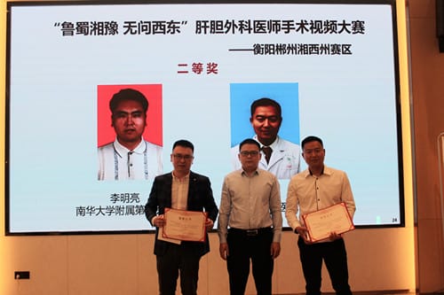 3月13日,在“鲁蜀湘豫”肝胆外科医师手术视频大赛湖南省赛区衡阳、郴州、湘西州分区赛中,李明亮医生代表肝胆胰脾外科出战,以“腹腔镜胰十二指肠切除术”勇夺第二名。