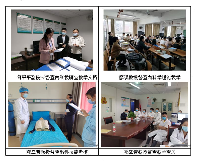 检查组认真查阅了教学及学生工作部教学管理文档及内科学教研室文档,实地走访教室、学生宿舍、食堂,并与南华大学的本科实习生、见习生进行了亲切座谈,认真听取学生代表的心声,查阅了实习生完整病历和实习手册,督查了实习生出科技能考核、内科学理论课、外科学见习带教、血液肿瘤科教学查房和神经内科小讲课。