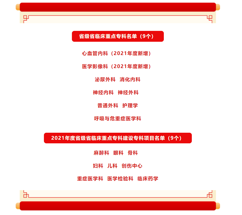 从《湖南省卫生健康委关于确认2021年度省临床重点专科及建设项目的通知》(湘卫函〔2022〕95号)获悉,南华大学附属第二医院新增11个省级省临床重点专科及建设项目,现全院共有18个省级省临床重点专科及建设项目。(详见下面名单)