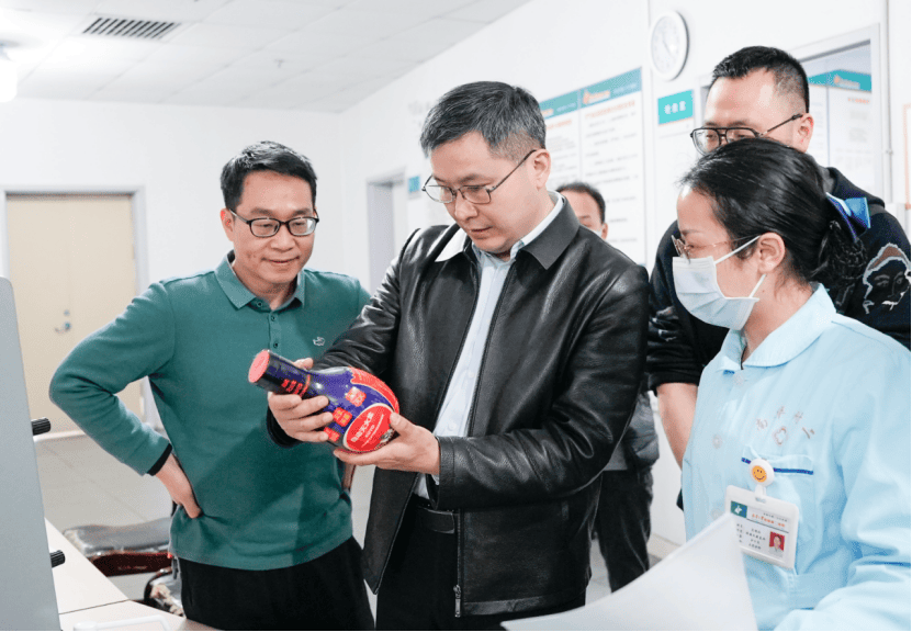 副院长肖启国(左一)副院长洪涛(正中)查验设备