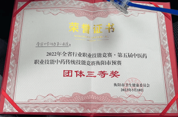 3月9日至10日,2022年全省行业职业技能竞赛·第五届中医药职业技能中药传统技能竞赛衡阳市预赛在湖南衡岳中药饮片有限公司举行,本次比赛分为理论知识笔试、中药性状及真伪鉴别、中药制剂技术竞赛三个环节。来自全市各医疗机构的28位药师激烈角逐,其中尚思异、彭进展、王娉婷三位药师代表我院参与比赛,荣获团体三等奖。三位药师纷纷表示在比赛中深切地感受到劳模精神、劳动精神和工匠精神,以后会更加积极地钻研中药传统技艺,为传承和发展中医药事业尽绵薄之力。