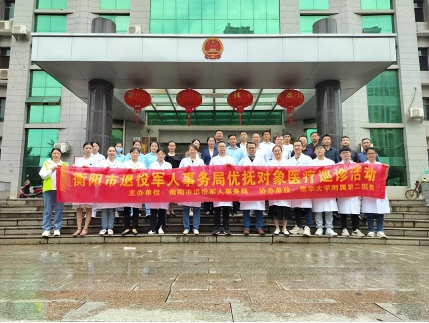 为深入落实主题教育,开展服务人民健康活动,进一步落实优抚政策,提高优抚对象健康水平。5月25日上午,由南华大学附属第二医院多学科专家组成的医疗巡诊队来到衡东县新塘镇,为当地优抚对象开展体检诊疗、送医送药送温暖活动。这是南华附二与衡阳市退役军人事务局联合开展的优抚系列活动的重要组成部分,也是顺应新时代双拥发展趋势,厚植“军民一家亲”情怀,传递党和政府关心和温暖的重要实践。