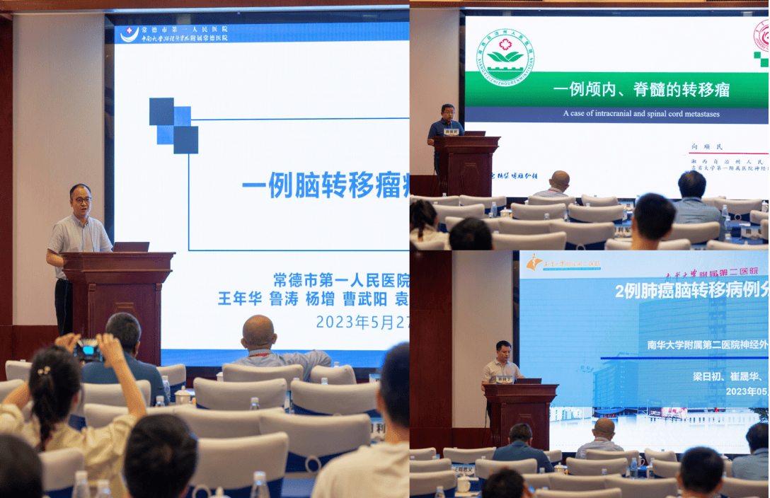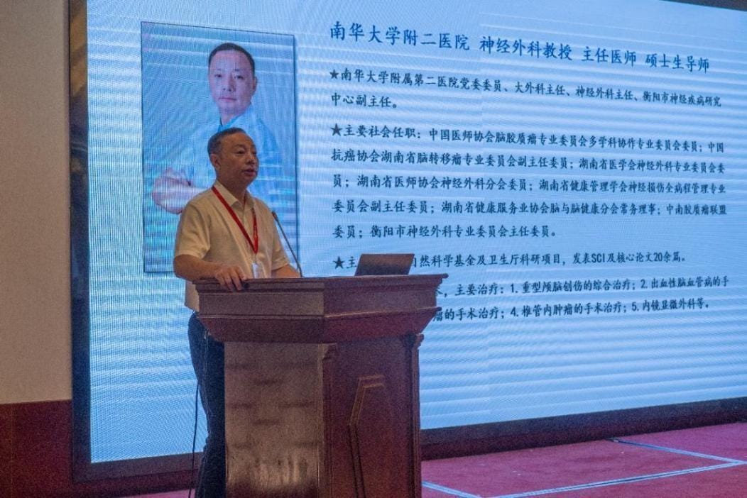 2023年5月26日至27日,由湖南省抗癌协会、中南大学湘雅医院、湖南省抗癌协会脑转移瘤专业委员会、湖南省脑肿瘤国际科技创新合作基底、衡阳市医学会神经外科专业委员会主办,南华大学附属第二医院承办的2023年湖南省抗癌协会脑转移瘤专业委员会学术年会暨2023年衡阳市医学会神经外科专业委员学术年会、湖湘神外青年医师沙龙——神经内镜治疗脑出血新技术培训班、湘雅-南华神经外科研究学术沙龙在美丽的雁城衡阳举行,会议聚集了150余人与会。各地专家齐聚一堂,为与会者呈现了一系列令人振奋的学术讲座。会议涵盖了多个领域,包括脑转移瘤、神经外科治疗和脑出血新技术等,为与会人员提供了宝贵的学术交流和互动平台。