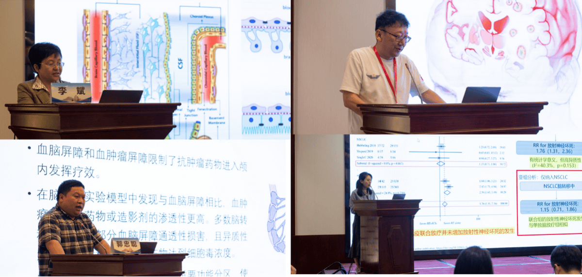 此外,来自中南大学湘雅医院放疗科的周蓉蓉教授、中南大学湘雅医院的李斌教授、湖南省中医药研究员兰东强教授、湖南省中医学院附属第一医院的郭忠聪教授,就颅内肿瘤相关临床与基础、放射治疗难点、中医药治疗、免疫治疗等领域进行了精彩的学术报告。同时还有来自南华大学附属南华医院唐三元教授、南华大学附属第二医院成浩教授、南华大学附属第二医院段永红教授就脑转移瘤临床治疗经验进行相关汇报。常德市第一人民医院王年华教授、湘西自治州人民医院向顺民教授、南华大学附属第二医院蒋园丁教授进行了病例分享。