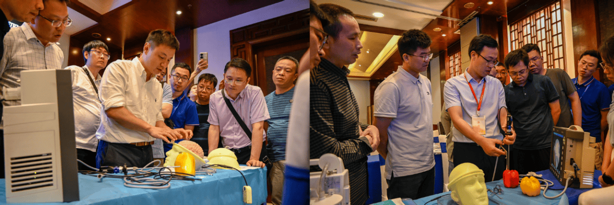 在之后的湖湘神外青年医师沙龙——神经内镜治疗脑出血新技术培训班上,来自中南大学湘雅医院的宋涛教授、江西省人民医院张建中教授、南华大学附属第二医院梁日初教授就脑出血治疗进行精彩授课。课后,宋涛教授和王兵教授分别示范了内镜下的基本操作规范,并亲自指导学员们内镜治疗脑出血在模型上进行了实操,更加深入地展示了现代医学技术的进步。最后,来自中南大学湘雅医院神经外科研究生朱永为、刘宏伟同学以及来自南华大学附属第二医院神经外科研究生聂振宇、冒星宇同学分别就自己所研究的领域进行课题讨论。本次沙龙得到了南华大学附属第二医院科教科傅亚老师亲自指导,达到了促进友谊,交流学术的目的。