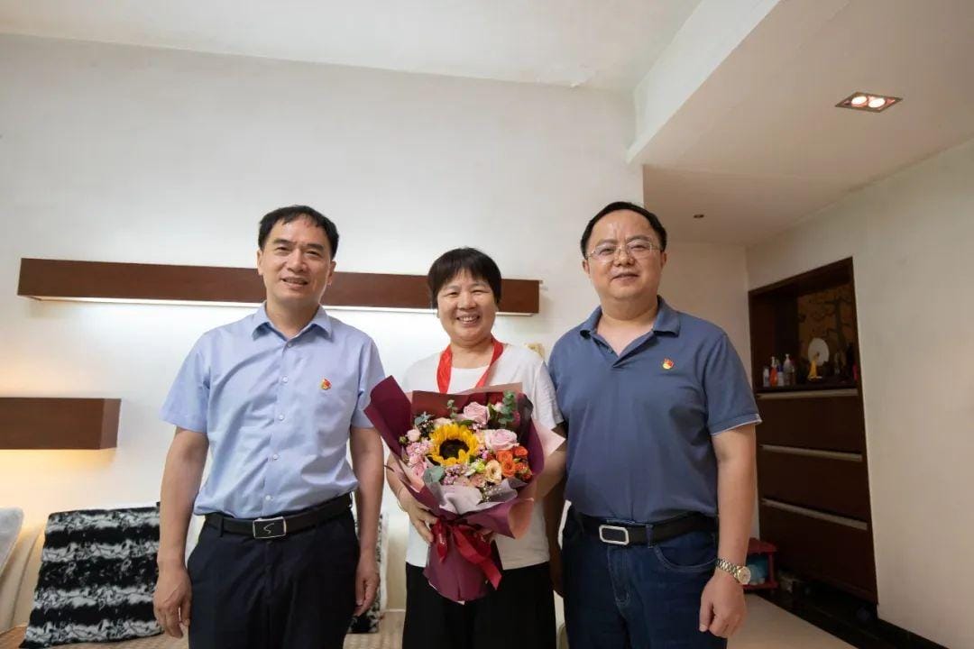 7月1日上午,南华大学党委委员、副校长雷小勇一行来到南华大学附属第二医院家属区老党员段月华家中,向“光荣在党50年”的她致以节日的问候和诚挚的祝福。南华大学附属第二医院党委书记李国庆全程陪同,同时代表医院党委送上慰问和祝福。