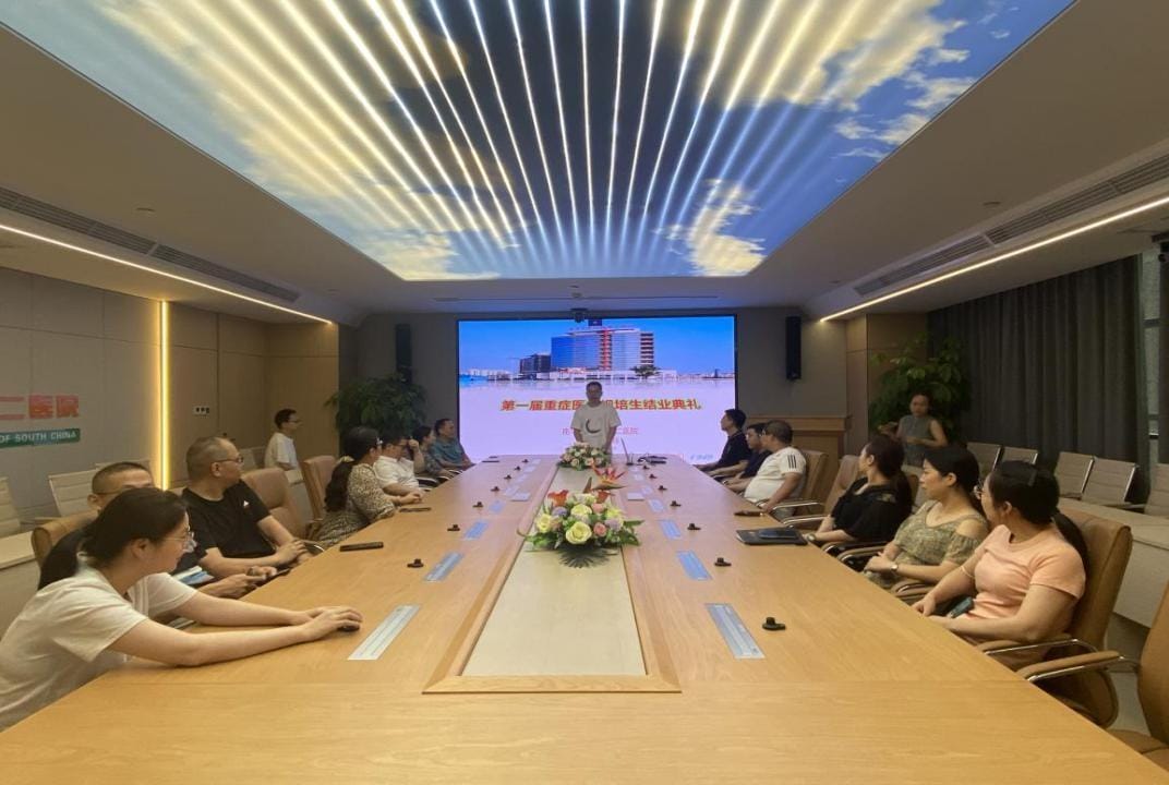 7月24日下午,南华大学附属第二医院全国住院医师规范化培训重症医学专业基地举行第一届重症医学住培医生结业典礼,这意味着在我院重症医学专业基地接受规范化培训的首届住院医师将迎来新的职业生涯。出席本次结业典礼的领导有院长刘文捷教授,重症医学科主任言彩红老师,副主任曾钧发老师和李方老师,以及各个病区的护士长;住培基地秘书黄治家老师担任主持;基地所有未值班的住培和专硕学员以及带教老师均参加了此次结业典礼。