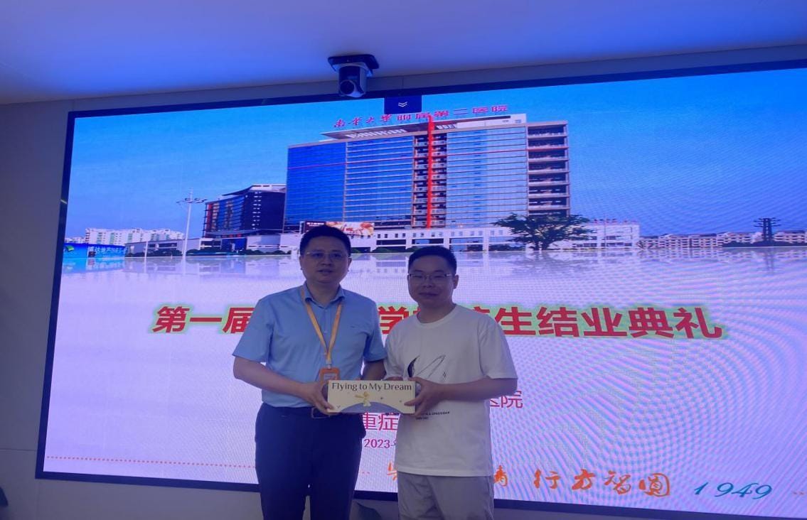 最后,刘文捷院长为学员送上承载着师恩的纪念品,祝贺完成从医学生到合格住院医师的华丽蜕变,他希望无论身处何种岗位、到达何种阶段,均应秉承南华附二良好的医德医风,努力成为一名“心中有爱、眼中有光、胸中有未来”的医者。 三载春秋,风雨共行。结业有期,师恩无限!
