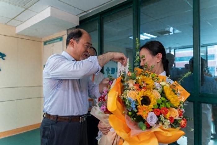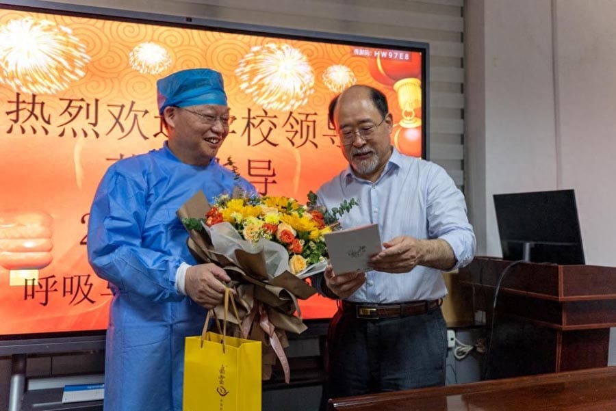在呼吸与危重症医学科,王福俤为优秀教师代表谭小武教授、刘珏教授送上了鲜花以及精心制作的明信片和精致的茶叶。王福俤对对他们将临床实践与医学教育融合中所付出的努力表示诚挚感谢,他们在医学研究、教育和临床工作中的出色表现表示高度认可。
