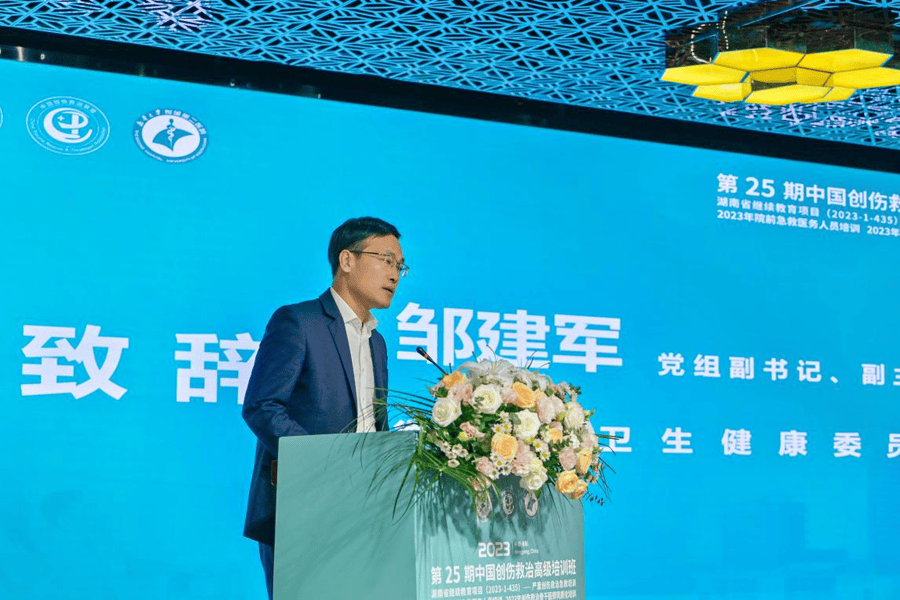 在开幕式上,衡阳市卫健委党组副书记邹建军进行致辞,他肯定了南华大学附属第二医院创伤中心在社会安全事故中所展现出的卓越创伤急救能力,并对其显著贡献给予高度评价。他寄语衡阳市的创伤医疗工作者们在未来的道路上能够携手前行,通过交流和共享,塑造一支高效、精锐的创伤救治团队。这不仅是为“健康中国”、“健康衡阳”的目标筑起坚实的基石,更是在守护衡阳市民的健康权益、保障生命安全上体现出的坚定与担当。