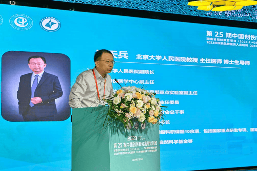 国家创伤医学中心副主任、北京大学人民医院副院长王天兵在致辞中感慨地提到了创伤医学在全球的重要性和急迫性,特别是在如今社会复杂多变的背景下。王天兵强调,随着科技的不断进步,创伤救治的模式和技术也在不断更新演变,而不断学习和提升,保持专业技能和知识的前沿性,对每一位创伤救治的专业人士都至关重要。王天兵分享了在国家创伤医学中心的工作实践和研究成果,并深入解析了创伤医学发展的几大关键领域。他坚信,南华大学附属第二医院以及湖南地区的创伤救治队伍在未来定能在创伤医学领域创下新的高峰,为推动湘南区域内创伤医学的进步和保障群众的生命安全发挥积极的作用。