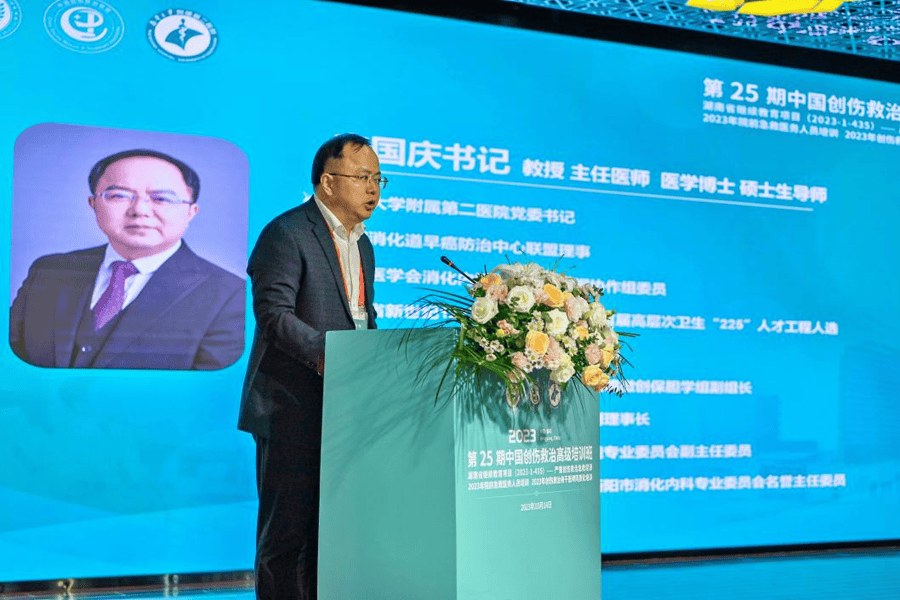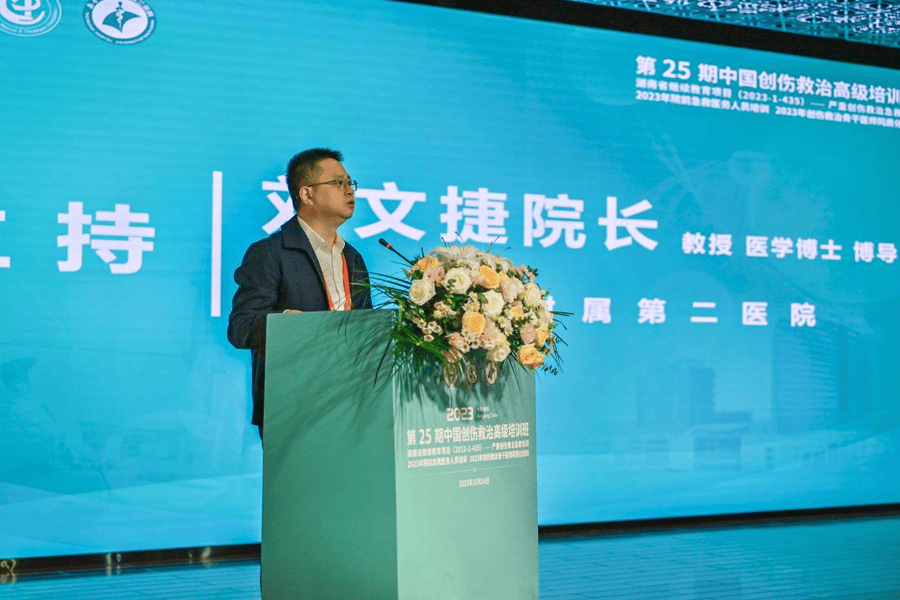 开幕式由南华大学附属第二医院院长刘文捷主持,他表示:“创伤救治不仅是一门技术,更是一种对生命深深的尊重和敬畏。每一位从事创伤救治的医务工作者,在使用专业知识和技能拯救生命的同时,也在彰显着对生命的崇敬和对患者的深切关怀。此次培训班不仅要学习高超的医疗技术,更要探讨在每一个创伤救治环节中如何体现人性的关怀,希望每一位学员能够深刻领悟到创伤救治所包含的人文精神和专业追求,携手共进,为更多的创伤患者带来实实在在的益处。”