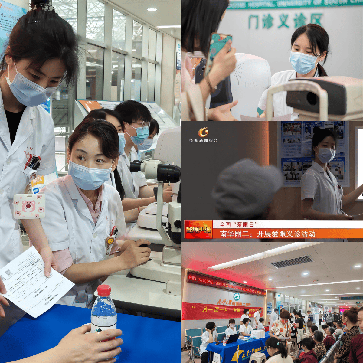 2023年6月6日是第28个全国爱眼日,南华附二医院眼科硕士研究生积极参与“66爱眼日,全民爱眼、从我做起”义诊活动。活动现场,志愿者们为广大市民进行眼健康检查,普及眼健康的基本常识。除此之外,志愿者还开展了以“科学用眼,远离近视”为主题的近视防控宣讲活动,呼吁家庭及社会各界人士关注儿童青少年眼健康问题,并得到衡阳市新闻联播报道。