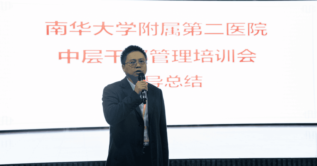 南华大学附属第二医院党委书记李国庆作开班动员致辞,院长刘文捷主持。李国庆书记指出,医院中层干部是医院决策的贯彻者和执行者,是科室的组织者和领导者,在医院日常运营中发挥着承上启下的关键作用。希望各位中层干部在高举习近平新时代中国特色社会主义思想伟大旗帜,坚持以人民健康为中心的指导思想下,结合医院中长期奋斗目标及科室运营实际情况,认真参与课堂互动,激发新的管理思路。