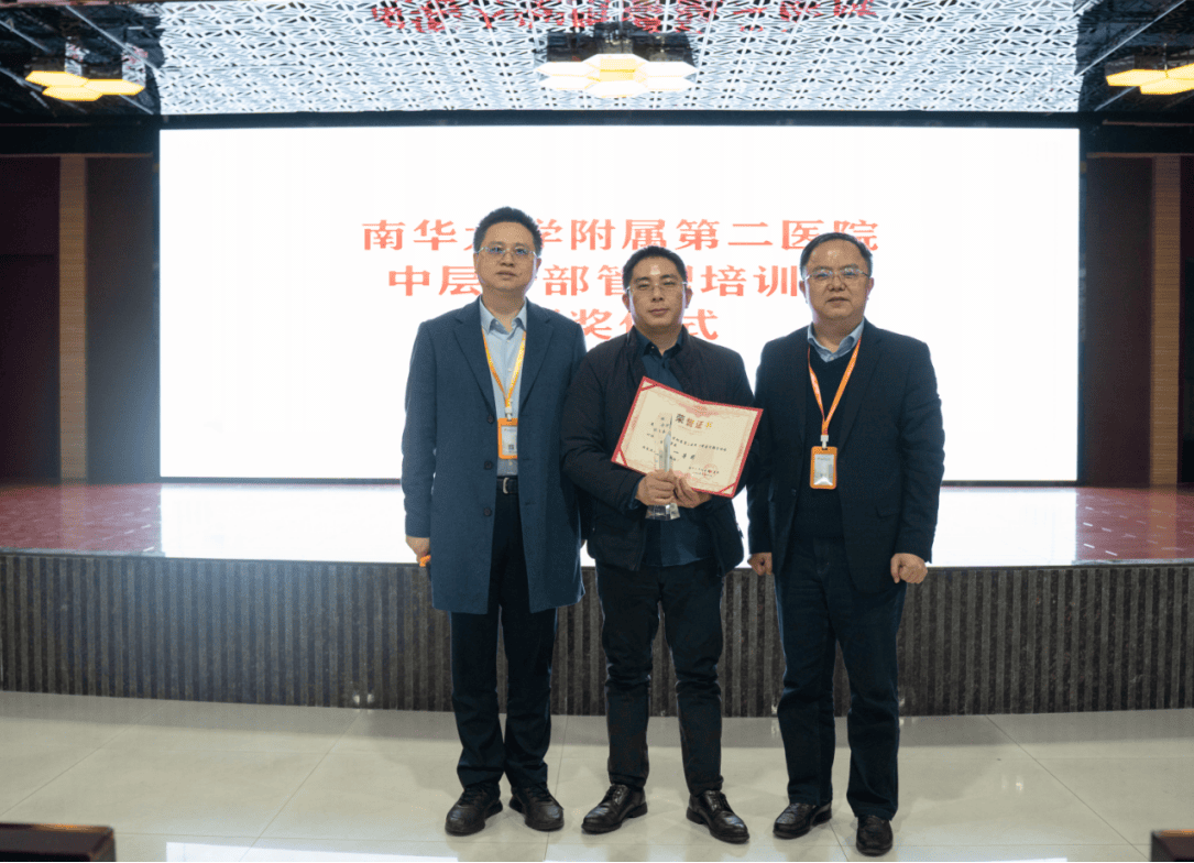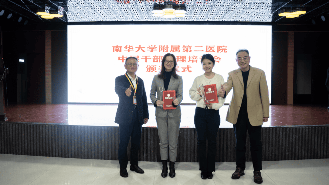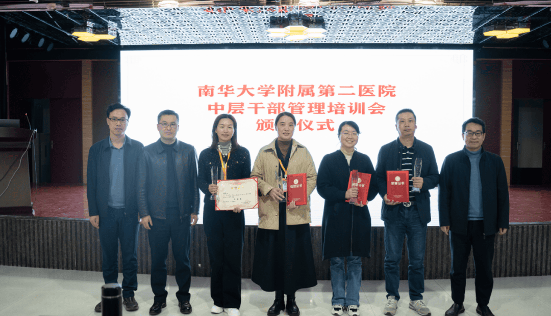 南华大学附属第二医院领导班子成员为培训表现优异的中层干部培训小组颁奖。