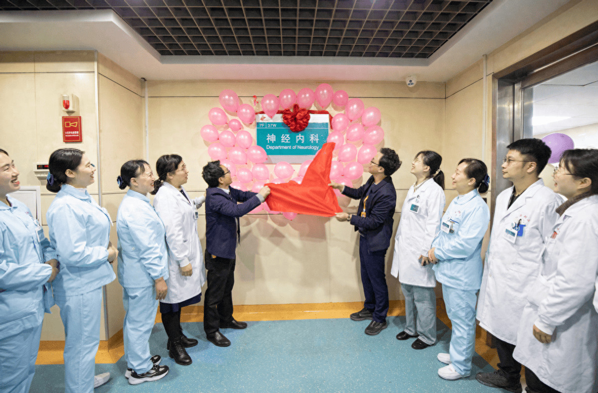 2023年12月11日上午8:00整,位于南华附二东院第二住院部7楼的东院神经内科正式开科,在整洁明亮的病房大门口,伴随着噼啪的气球爆炸声,副院长肖启国、王兵和神经内科东院医护团队代表共同为科室揭牌。东院神经内科的建立是医院积极响应人民日益增长的美好生活需要的时代要求,也是更好的服务老城区居民健康的具体举措。