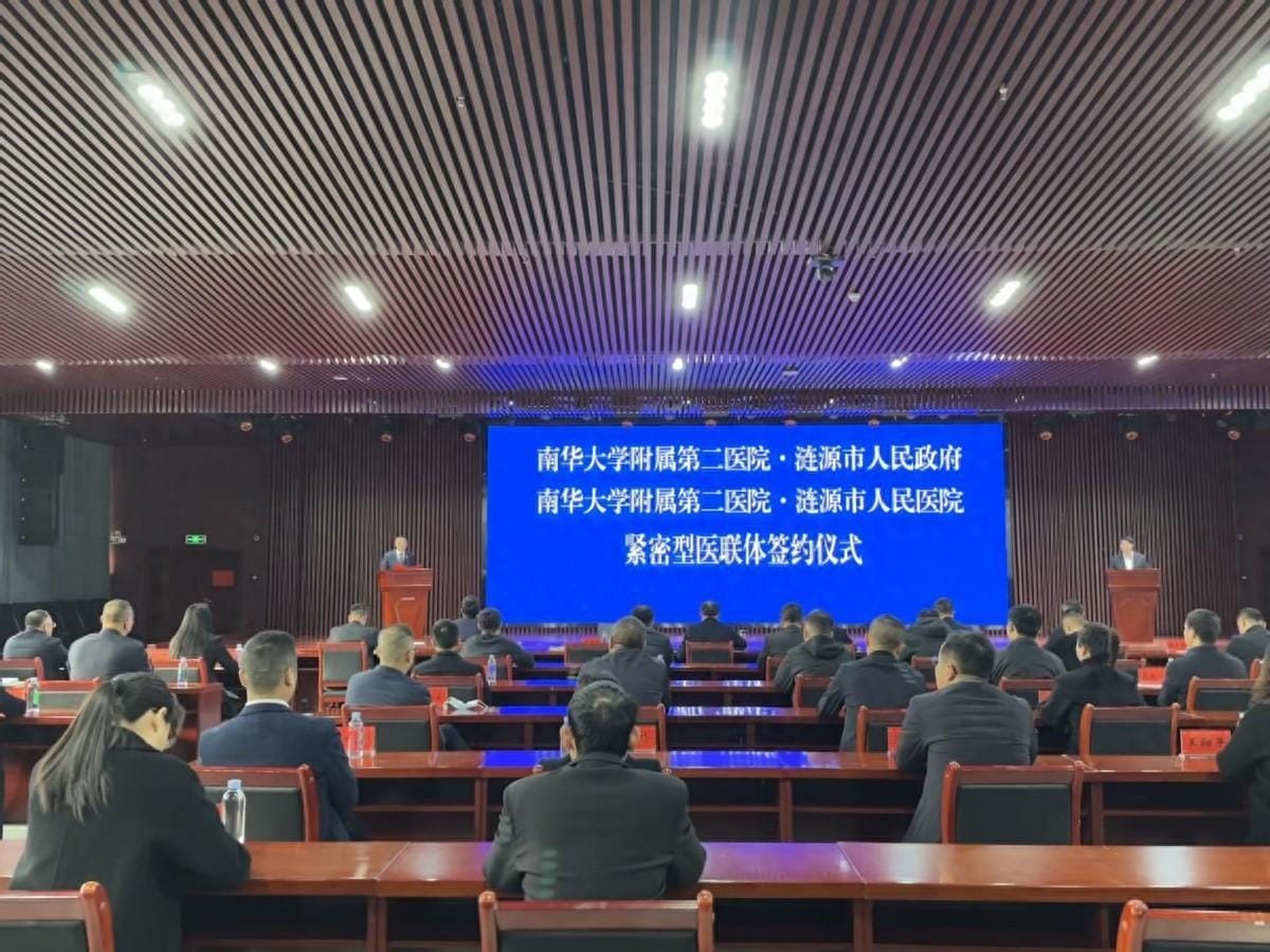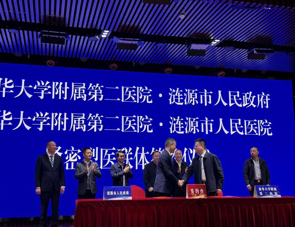 12月12日上午,南华大学附属第二医院与涟源市政府、涟源市人民医院举行紧密型医联体签约、揭牌仪式。此次签约后,双方将合力打造紧密型医联体建设新样板,就医疗技术、学科建设、人才培养、医疗管理等方面展开深度合作,让涟源人民享受到更加安全、高效、便捷、廉价、优质的医疗服务。