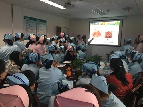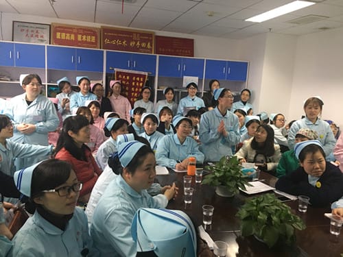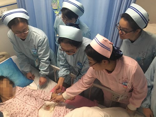2月22日16时,查房准时举行,共迎来各科室护理同仁一百余人,大家讨论激烈,争相发言,各抒己见,小小的医生办公室瞬间热闹了起来。泌尿三区此次查房也是我院首次开展多学科协作护理查房。针对患者营养及术后放疗等相关护理问题,放疗科护士长黄莉老师做出了详细生动的解答,为该患者制定了个性化营养计划,赢得了阵阵掌声。对涉及到妇产科、胃肠外科、ICU、造口、心理咨询等相关护理问题,莅临本次查房的护理专家也都做出了满意的解答,为专病护士提供了更全面的理论和技术支持。