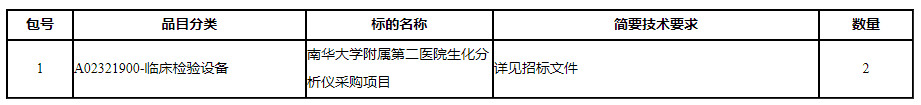 采购项目名称:南华大学附属第二医院生化分析仪采购项目