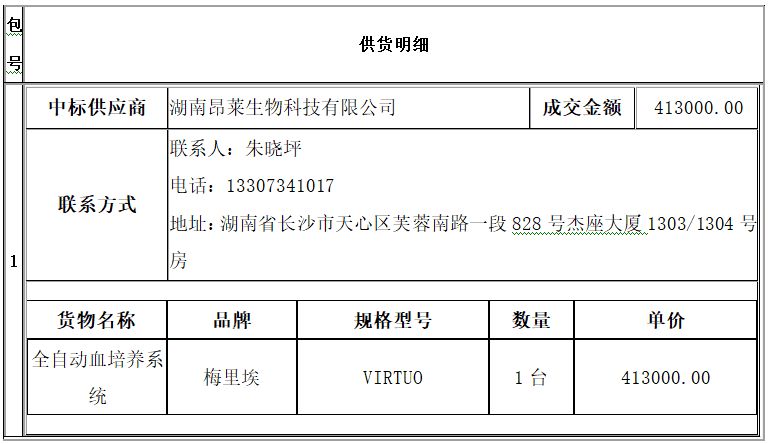 南华大学附属第二医院的南华大学附属第二医院全自动血培养系统采购项目于2024年8月16日结束,现将中标(成交)结果公告如下: