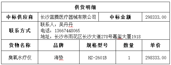 南华大学附属第二医院的南华大学附属第二医院臭氧水疗仪采购项目于2024年11月06日结束,现将中标结果公告如下: