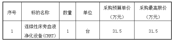 2.1项目名称:南华大学附属第二医院连续性床旁血液净化设备(CRRT)采购项目