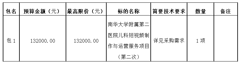 湖南华雁项目管理有限公司受南华大学附属第二医院 的委托,对其儿科短视频制作与运营服务项目(第二次)进行竞争性磋商采购,现采用发布公告的方式,邀请符合资格条件的供应商参与竞争性磋商采购活动。