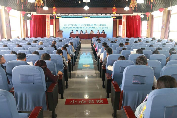 4月21日下午,医院在教学综合楼七楼会议室组织召医院2017年度党风廉政建设和反腐败工作会议,院长汤永红同志主持会议,纪委书记颜亚平同志向大会作党风廉政建设和反腐败工作报告;南华大学校长助理,附二集团党委书记、院长罗志刚同志作了重要讲话。全体院领导、中层干部和重点岗位工作人员共计200余人出席了会议。