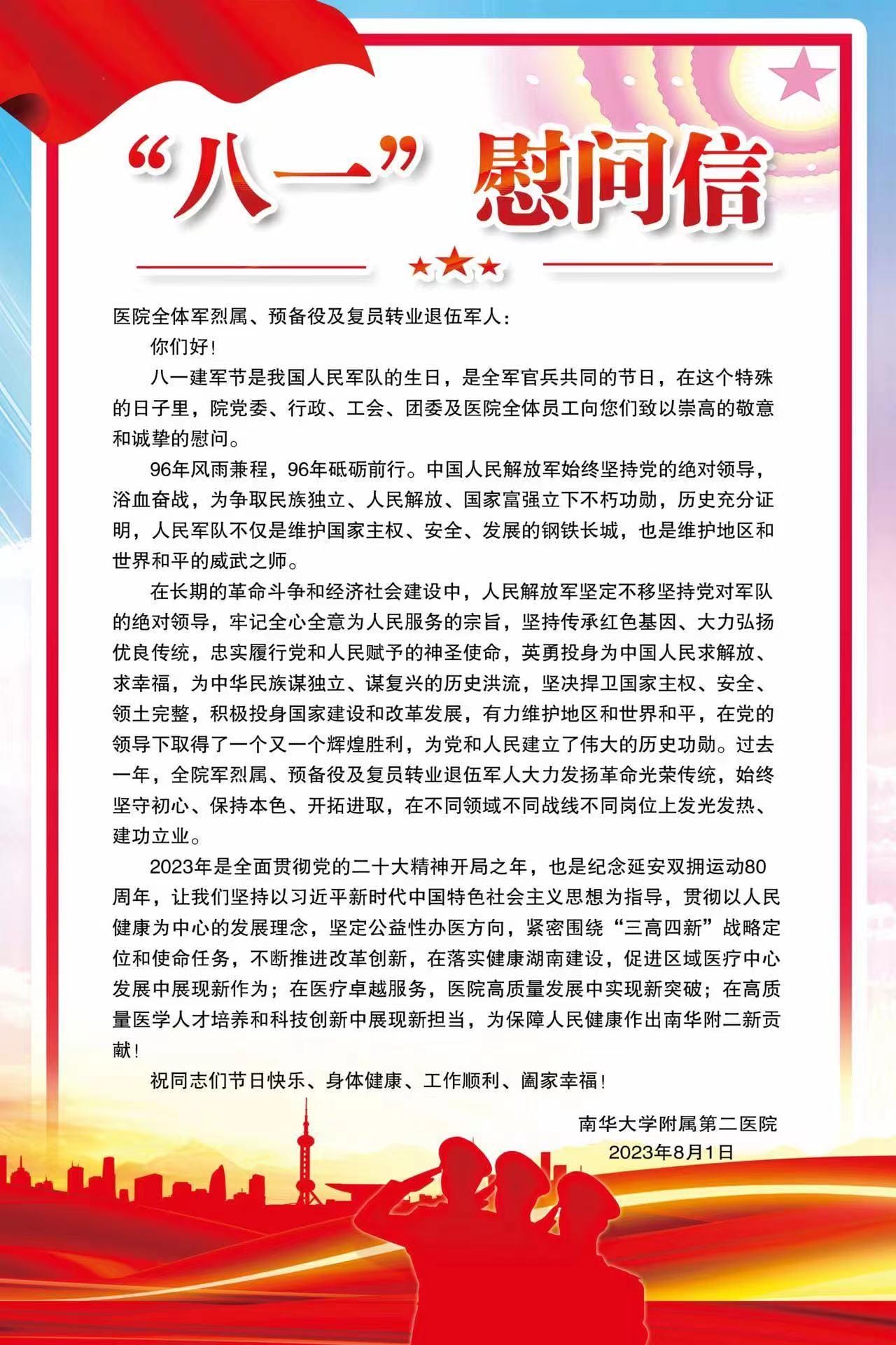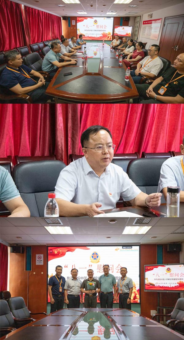 8月1日,为庆祝建军96周年,南华大学附属第二医院召开“八一”慰问会,党委书记李国庆等院领导与我院军烈属和复原转业退伍军人代表开展座谈,了解他们在各个岗位上的工作、学习和生活近况,同时为到场代表献上鲜花,向“最可爱的人”致以崇高的敬意和诚挚的慰问!