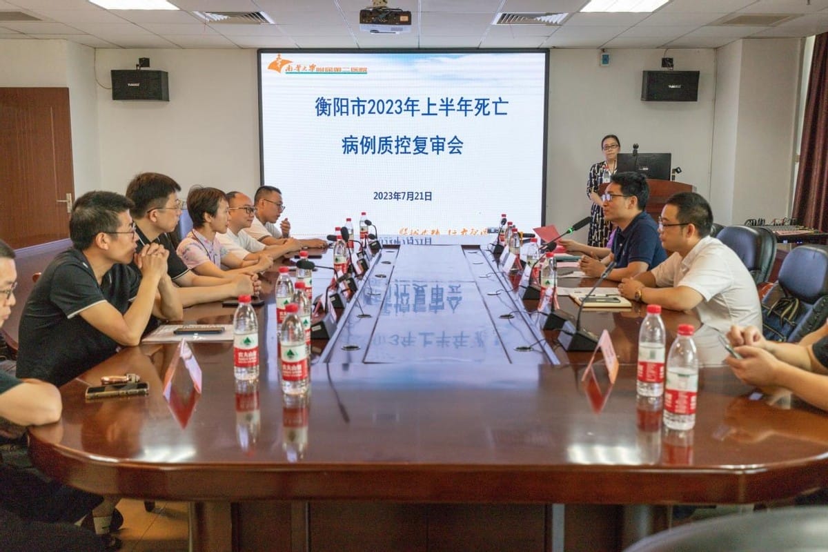 2023年7月21日由衡阳市卫生健康委员会主办、衡阳市复苏质量控制中心承办的衡阳市2023年上半年死亡病例复审会在南华大学附属第二医院办公楼十一楼会议室顺利召开。